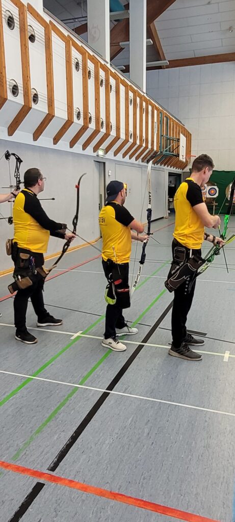 Auch unser neuer Landesverband konnte spontan ein Team zusammenstellen. Als Unterstützung entsandte unsere Abteilungsleiterin Nancy, einen der durch seine „gute Laune“ berüchtigt ist und die Moral im Verbandsteam defintiv beeinflussen würde, die Wahl fiel also auf Simon und seinen Jagdbogen.